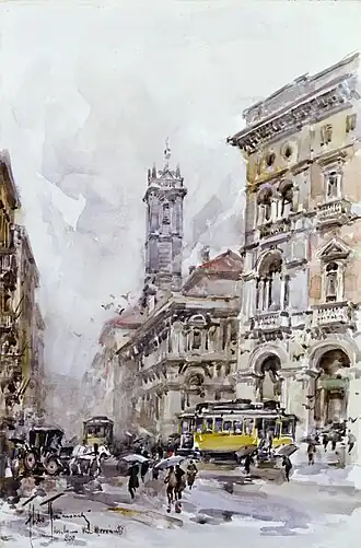 Specializing in watercolor painting, an exclusive piece of his repertoire, in 1939 he was appointed a professor of watercolors at the Academy of Brera, a chair he left immediately after the war to devote himself full-time to making films. Later he painted landscapes, animals, flowers and many portraits, including those of the Popes Pius XII, John XXIII (1958) and Pope Paul VI (1966). He also produced some windows for the Seminary of Monza, for the parish of Menaggio in Como, and the church of San Simpliciano in Milan.