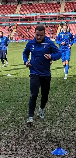 ![]() MacDonald (wearing number 7) warming up for Gillingham in 2023 | |||