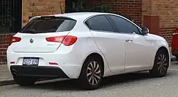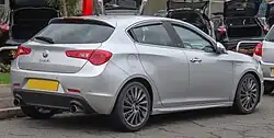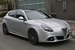 The Alfa Romeo Giulietta[7] (Type 940) is a hatchback manufactured and marketed by Alfa Romeo, as a 5-door small family car with sporting ambitions. Production started near the end of 2009 and the model was introduced at the March 2010 Geneva Motor Show.[8] The Giulietta placed second in the 2011 European Car of the Year awards. In 2020, Alfa Romeo announced that they were going to axe the Giulietta and production ended on 22 December 2020 spanning 10 years of sales from a period of 2010 to 2020.[9] In total 469,067 examples were produced until 2020.[1]