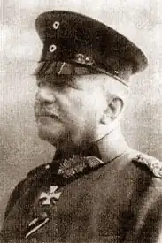 At the beginning of World War I, Larisch was reactivated and was given command of the 10th Division.[3] The division was located on the Western front as part of the 5th Army, under the command of Crown Prince Wilhelm, participated in the capture of Longwy Fortress. After the First Battle of the Marne, the division held positions east of Verdun where it would remain until October 1916.