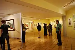 Behind the main house is the Berta Pietrasanta Temporary Exhibition Hall, which holds shows of mostly watercolor works by both Mexican and international artists.[4][7] Its largest show is the Bienal Internacional de Acuarela (International Biennial of Watercolors), an international exhibition of watercolors held every two years.[3] Other recent shows included a display of 45 lithographs by Honoré Daumier which were donated to the Museo de la Estampa in 1999 and returned for the show.[3] Another show was a collection of winners from a watercolor contest in Michoacán featuring work by Joel Astreo, from Zamora; Nadia Nucico, from Uruapan; Ángel Pahuamba, from the Meseta Purépecha area; Mireya Parra, from Morelia; Judith Lara, from Morelia; Dionicio Pascoe, from Tacámbaro; Mercedes Fernández, from Capula, and Javier López, from Morelia.[8]