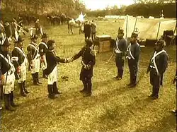 ![]() Actors Pablo Cedrón (as José de San Martín) and Marcelo Savignone (as Manuel Belgrano) represent the Posta de Yatasto, while Felipe Pigna and Mario Pergolini watch it from the background and act as if they were among it. | |