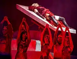 - ^ Dupere, Katie (July 19, 2022). "Lady Gaga Drips in Molten Gold Metallics, Blood Stains and Edgy Outfits on First Night of Chromatica Ball Tour". Women's Wear Daily. Archived from the original on September 20, 2022. Retrieved August 29, 2022.