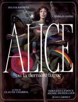 Alice or the Last Escapade (French: Alice ou la dernière fugue) is a 1977 French fantasy film written and directed by Claude Chabrol. The film is very loosely inspired by the 1865 novel Alice's Adventures in Wonderland by Lewis Carroll, including the protagonist's name being Alice Carroll (a combination of the Alice character and the author's pseudonymous surname).[2]