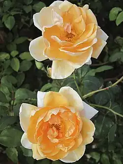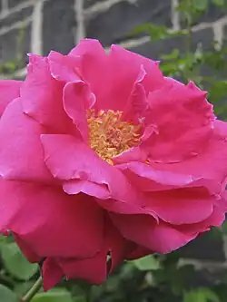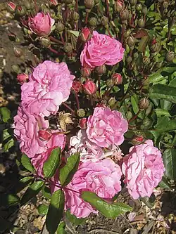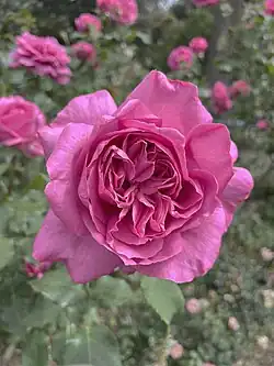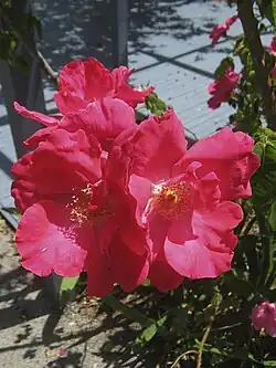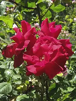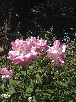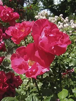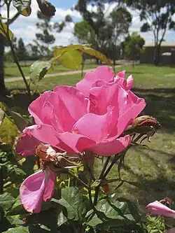 Below is an illustrated list of surviving Alister Clark roses in the Memorial Garden. Several related roses are also grown there. The list has been compiled from the brochure Alister Clark Memorial Garden of Hume City Council; and the online list established by Help Me Find Roses for Clark, Alister. Biographical detail comes from the Govanstones' The Women Behind the Roses.[6] Further detail is from Susan Irvine's A Hillside of Roses.[7] Roses putatively named after racehorses have been checked against the Pedigree Online Thoroughbred Database.[8]