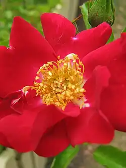 'Mrs Hugh Dettmann'[58] 1930, Hybrid Gigantea with big orange hips in autumn. The Dettmanns were daffodil and rose fanciers with a large garden at Kyneton, Victoria in which Clark liked to try out new varieties.
