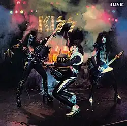 Alive! is the fourth album overall, and the first live album, by American hard rock band Kiss, released on September 10, 1975. It is considered to be their breakthrough, and a landmark for live albums. The double-album contains live versions of selected tracks from their first three studio albums, Kiss, Hotter Than Hell and Dressed to Kill. It was recorded at concerts in Detroit, Michigan; Cleveland, Ohio; Wildwood, New Jersey; and Davenport, Iowa on May 16, June 21, July 20 and 23, 1975.[2]