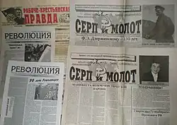 | Newspaper | Serp i Molot (Sickle and Hammer), Raboche-krest'yanskaya pravda (Workers' and Peasants' Truth) Vpered (Forward) |