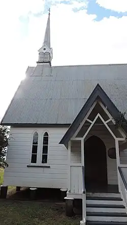All Saints Church is a timber church erected at Yandilla Station by the Gore family about 1878 on the site of an earlier church, which it closely resembles. The graveyard around the church is believed to have been established in 1863 supplanting the previous custom of burial close to the homestead.[1]