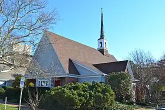 All Saints' Episcopal Church is a historic Episcopal church located at 18 Olive Avenue, Lewes and Rehoboth Hundred in Rehoboth Beach, Sussex County, Delaware. It was built in 1893 for the summer services of an Episcopal congregation. It is a one-story structure constructed of hand-molded brick, measuring 100 feet by 30 feet. It features board-and-batten wainscotting, fishscale shingled gable ends, ribbon windows, and a low-pitched gable roof in the Arts and Crafts style. The church was renovated after a fire in 1938.[2] It is joined with St. George's Chapel, Lewes in the Episcopal Parish of All Saints’ Church & St. George's Chapel.