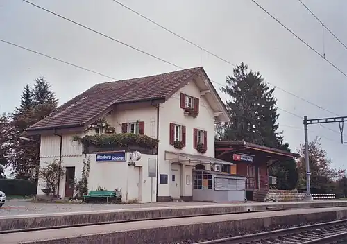 Altenburg-Rheinau (German: Bahnhof Altenburg-Rheinau) was a railway station in the municipality of Jestetten in the German state of Baden-Württemberg, serving the villages of Altenburg (Jestetten municipality) and Rheinau in the Swiss canton of Zurich. It was located between Jestetten and Neuhausen Rheinfall on the border crossing Eglisau–Neuhausen railway line, which is owned and operated by Swiss Federal Railways (SBB). The station, which opened in 1897, was last called at by the S22 service of Zürich S-Bahn until it was closed in 2010 due to low passenger frequency, despite protests from the German authorities.[1][2][3][4][5]