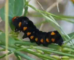 Caterpillars feed on the leaves of Boerhavia species.[5]
