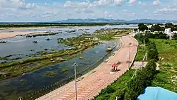Amaravathi or Amaravati[4] is a village located on the banks of the Krishna River in the Palnadu district of Andhra Pradesh, India.[5] It was built by zamindar Vasireddy Venkatadri Nayudu in late 18th century on the site of the ancient Saatavahana capital Dhanyakataka.[6] Amaravathi serves as the administrative centre of Amaravathi mandal[7] and lies within the Andhra Pradesh Capital Region. Known for its cultural heritage, Amaravathi lends its name to the state's newly planned capital, Amaravati, located 35 kilometres to the east in Guntur district. Amaravathi is notable for its prominent place in both Hindu and Buddhist traditions.[8]