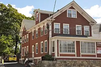 The Amasa Farrier Boardinghouse is a historic house at 280 Main Street in Stoneham, Massachusetts. The large wood-frame house was built c. 1865 by Amasa Farrier, the town surveyor. The building served as a boarding house for workers in Stoneham's shoe factories, and is the only boarding house of the period to survive in the town. It is a 2+12-story wood-frame structure with modest Italianate styling, including bracketed eaves and gable, and broad corner boards. A period porch with bracketed turned posts[2] has been replaced by an enclosed porch.