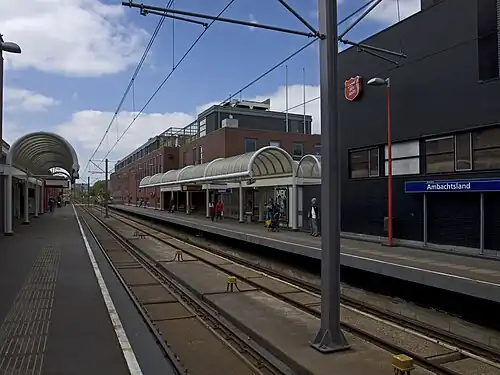 Ambachtsland is a station on Line B of the Rotterdam Metro and is situated in the Zevenkamp neighbourhood of Rotterdam. Near the station is Zevenkamp shopping mall, and also a community centre called Youngsters, where there is a church service every Sunday morning.
