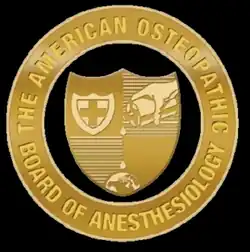 - ^ "Certification". American Osteopathic Board of Anesthesiology. 2019. Retrieved 29 July 2019.
