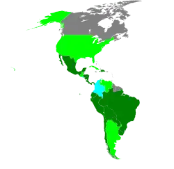Signatory and member states of the Pact of Bogotá which was signied in 1948 and which is part of the legal framework of the Organization of American States (OAS). Color legend: