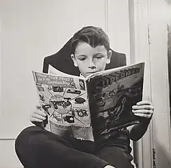 ![]() German refugee child at N.Y. Children's Colony, 1942, reading a Superman comic book. | |
