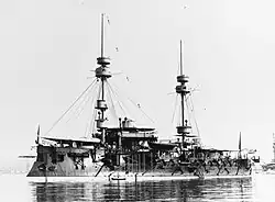 As more modern pre-dreadnought battleships began to enter the fleet by the late 1890s, Amiral Baudin and Formidable were transferred from the Mediterranean Fleet—the main French naval force—to the less strategically significant Northern Squadron in 1899.[23] There, the normal routine of training exercises continued as in earlier years, including joint maneuvers with the Mediterranean Fleet. They both remained in service until 1902, when Amiral Baudin was transferred to the Reserve Squadron of the Mediterranean Fleet. Formidable lingered on with the Northern Squadron that year, but was demobilized as well in 1903.[24][25][26] Formidable was briefly reactivated in 1904 to temporarily replace another vessel, but quickly returned to reserve;[27] neither vessel saw further active service and Amiral Baudin was converted into a hulk in 1909. Formidable was stricken from the naval register in 1911 and broken up, but Amiral Baudin's fate is unknown.[13]