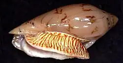 | Shell and live animal of Amoria diamantina (specimen at CSIRO Marine Invertebrates Image Collection (MIIC)) | |