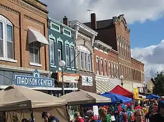 The Anamosa Main Street Historic District is a nationally recognized historic district located in Anamosa, Iowa, United States. It was listed on the National Register of Historic Places in 2009.[1] At the time of its nomination the district consisted of 52 resources, including 42 contributing buildings, one contributing structure, and nine non-contributing buildings.[2] The district takes in most of the city's central business district. For the most part, the buildings here were used for commercial purposes, but some of them housed light industrial operations, the post office, and the Masonic lodge. The buildings generally range from one to two stories, but a couple structures are three stories in height. Built between the 1860s and the early decades of the 20th century, the buildings are composed of masonry construction. Several were built using the areas limestone. The Italianate style is dominate,[2] but other late 19th and 20th century revivals, and late 19th and early 20th century American movements are also found here.