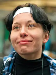 Anastasia Baburova (Russian: Анастасия Эдуардовна Бабурова, romanizedAnastasia Eduardovna Baburova; Ukrainian: Анастасiя Едуардівна Бабурова, romanizedAnatasiia Eduardivna Baburova; 30 November 1983 – 19 January 2009) was a journalist for Novaya Gazeta and a student of journalism at Moscow State University. She was born in Sevastopol, Ukrainian SSR.[1][2][3] A member of Autonomous Action,[4] she investigated the activities of neo-Nazi groups.[5][6] She was shot and killed together with human rights lawyer Stanislav Markelov.[7][8][9]