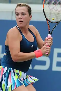 After exiting in the first round of İstanbul, Pavlyuchenkova made her first semifinal of the year the following week in Baku by defeating Elizaveta Kulichkova, Kateryna Bondarenko and Kirsten Flipkens. There, she was upset by Romanian Patricia Maria Țig.[71] She then advanced to her first final of the season at the Washington Open, her second at the tournament, but was denied the title once again, this time by American Sloane Stephens.[72] At the Cincinnati Open, Pavlyuchenkova advanced to the last eight but was defeated by third seed Simona Halep.[73] At the US Open, 31st-seeded Pavlyuchenkova bowed out in the second round to qualifier Anett Kontaveit.[74]