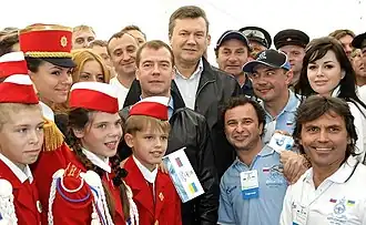 Zavorotnyuk with Russian president Dmitry Medvedev and Ukrainian president Viktor Yanukovych in 2010