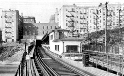 The station was opened on July 1, 1918, on an extension serving the purpose of connecting the IRT Ninth Avenue Line with the IRT Jerome Avenue Line.[1] Despite the main line's closure in 1940, this station and two others remained open as part of the Polo Grounds Shuttle for baseball fans traveling to the Polo Grounds, but this remaining segment closed on August 31, 1958, after the Giants moved to San Francisco.[4][2][5] Although there was discussion to merge this segment with the IRT Lenox Avenue Line, the tunnel from Sedgwick Avenue to Anderson–Jerome Avenues was built to NYC Elevated Railway standards. Those standards specified the clearance between the tracks and the sides of the tunnel only allowed for the "El" type open third rail instead of the covered third rail in use on the IRT Subway. The standard distance from the center of the track to the center of the El type open third rail-head is a few inches shorter than the distance to the subway type covered third rail-head. This incompatibility prevented the line from being used in the future by standard IRT Subway equipment, and brought about the line's demise instead of being linked to the IRT Jerome Avenue Line at 167th Street in The Bronx and the IRT Lenox Avenue Line at Harlem–148th Street in Manhattan, which had been proposed by the New York City Board of Transportation in 1940.[6]