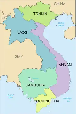 French Indochina. Cochinchina is the southernmost province, south of Cambodia.