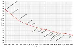 Simplified altitude profile of the line