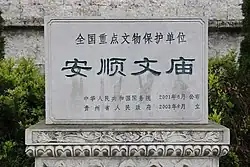 Anshun Confucius Temple[3] (simplified Chinese: 安顺文庙; traditional Chinese: 安順文廟), or Anshun Confucian Temple, also known as Fuxue Palace (府学宫), [4] is a Confucian temple[5] located in Xixiu District, Anshun City, Guizhou Province. It is one of the four major ancient stone architectural complexes in China.[6]