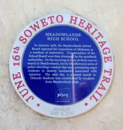 The U.S. anti-apartheid movement gained rapid momentum after the Soweto uprising of 1976, which was a series of student-led demonstrations against the government's decree of imposing Afrikaans as the medium of instruction in all black schools. At the 1976 Black Forum on Foreign Policy Leadership Conference, attendees expressed a need for a separate, outside organization to complement efforts of the Congressional Black Caucus (CBC) inside Congress.[12] As a result, the CBC helped establish TransAfrica in 1977 as a Black American foreign policy organization. Similar to the ACOA, TransAfrica was not exclusively an anti-apartheid organization but rather a body that addressed Afro-Caribbean concerns. Led by Randall Robinson, TransAfrica organized protest movements throughout the United States, including demonstrates outside the South African embassy that resulted in 5,000 Americans being arrested.[13] In addition, it also advocated for progressive viewpoints in U.S. foreign policy debates by amplifying the voices of African Americans. Soon after its establishment, TransAfrica became the largest anti-apartheid organizer in the United States.