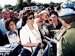 Antigoni Papadopoulou delivering a statute to UNFICYP during a protest march of the people of Morphou