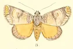 1. ^ Hewitson, William C. & Moore, Frederic (1879). Descriptions of New Indian Lepidopterous Insects: From the Collection of the Late Mr. W.S. Atkinson, M.A., F.L.S., &c. The Asiatic Society of Bengal. OCLC 9625544 – via Internet Archive. With an image at Plate V, Figure 3.