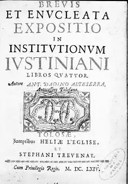 Antoine Dadin de Hauteserre (1602 – 1682) was a French jurist. He was also referred to as Dadinus Alteserra, Dadino Alteserra or D'Autreserre.