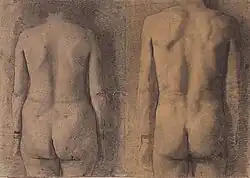 Two Backs (Male-Female), pencil on paper, 38cm x 54cm, 1964