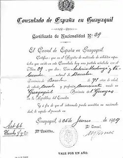 In 1883, he co‑founded the Sociedad Española de Beneficencia de Guayaquil, supporting Spanish immigrants in Guayaquil.[14]