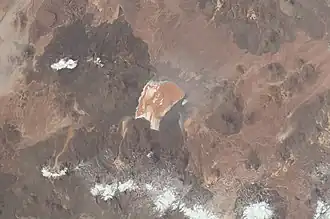 Laguna Colorada and Apachita (lower right) as seen from the ISS (North is to the upper left part of this image.) | |
