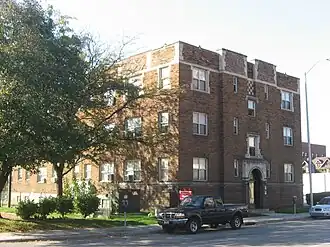 Indianapolis | Built in 1905 by developer E.G. Spink for Caleb N. Lodge, this is an example of the "Eastern" flat type.[1] |