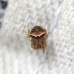 Araneus montereyensis is a comparatively small species of orb weaver in the spider family Araneidae. It is found in North America.[1][2][3][4] A. montereyensis somewhat resembles Araneus bispinosus but its anterior humps are smaller.[5] Most commonly observed in California during the dry season, this spider "has been found in the low branches of trees, shrubs in oak woodlands, chaparral, and in ornamental plantings."[5]