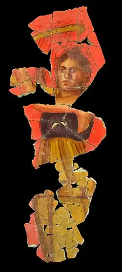 Recent excavations focused on a rich home dated back to the 1st century BC.[6] Covered by later constructions, two adjoined rooms and an adjacent patio have been found. Archaeologists have discovered several painted decors, which were ornating floors, walls and ceilings; some of these fragments were still in place on the walls.