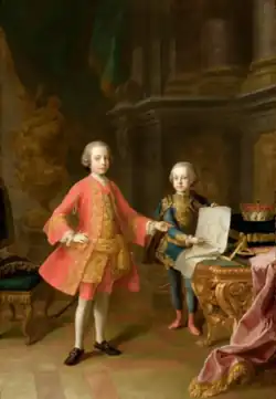 - ^ Genealogie ascendante jusqu'au quatrieme degre inclusivement de tous les Rois et Princes de maisons souveraines de l'Europe actuellement vivans [Genealogy up to the fourth degree inclusive of all the Kings and Princes of sovereign houses of Europe currently living] (in French). Bourdeaux: Frederic Guillaume Birnstiel. 1768. p. 1.