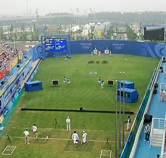 The Olympic Green Archery Field, where the event took place, during the 2008 Summer Olympics.