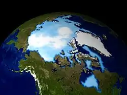 Since 1880, the global temperature has risen 0.8°C; but the temperature in the Arctic has warmed twice as much, leading to much less sea ice coverage and greater accessibility to natural resources, transport passages and fisheries.[2] Between 1971 and 2019 the temperature in the Arctic was three times higher than the increase in the global average during the same period.[3]