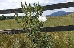 Argemone polyanthemos is sometimes planted in gardens as an ornamental plant for its long succession of showy blooms.[7] It grows well in sandy or gravelly soil of somewhat poor quality with little to no supplemental watering. It dislikes being transplanted and seed is placed outside by growers on the soil surface before the last frost date.[6]