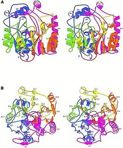 1. ^ a b c d Humm A, Fritsche E, Steinbacher S, Huber R (June 1997). "Crystal structure and mechanism of human L-arginine:glycine amidinotransferase: a mitochondrial enzyme involved in creatine biosynthesis". EMBO J. 16 (12): 3373–85. doi:10.1093/emboj/16.12.3373. PMC 1169963. PMID 9218780.
