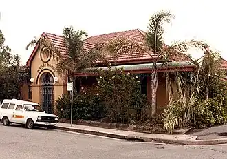 This large complex of buildings, linked in pavilion fashion, covers the entire property and is built to each of the three street alignments. Internal alterations and modern infill development on the Centenary Road side and the Argyle Street corner have been made to adapt the building complex for night club use. All buildings are rendered and painted light cream with label moulds and other features in contrasting colours.[1]