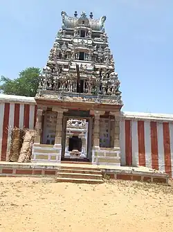 The Gomathi Amman Sannithi is to the right of Moolavar. There is a large mound (Tamil: புற்று) near the entrance to the Amman Sannithi. Earlier, there was a wall between the Sivan and Ambal Sannithi.