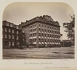 The Arlington Hotel was a hotel in Washington, D.C.. It was built in 1868 and was considered the most opulent hotel in Washington, D.C. during the post-Civil War era,[1] described as a "distinctive but low-keyed example of the Second Empire style."[2]